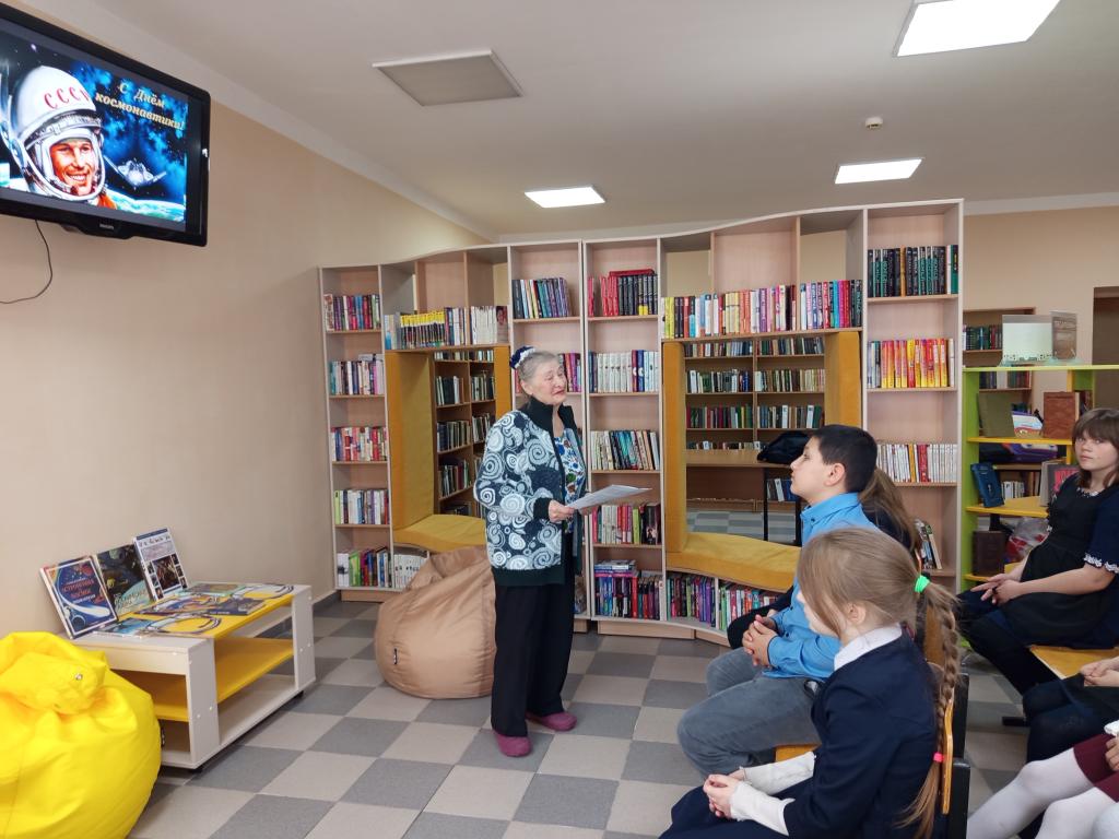Хотмыжская библиотека совместно с Советом ветеранов ко Дню космонавтики провели познавательно - игровую программу "Космическая фантастика". В ходе мероприятия ребята познакомились с историей космонавтики, ответили на вопросы викторины, поиграли в космический игры. Председатель первичной группы ветеранов Л. В. Куковицкая рассказала, как она будучи школьницей смотрела запуск Ю. Гагарина в космос, поделилась своими впечатлениями от увиденного. Затем прочитала авторское стихотворение "День космонавтики".
